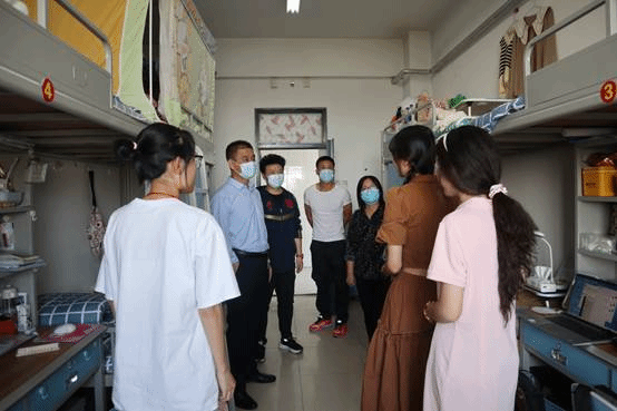 党委副书记郑轶和学生工作办公室主任王玮老师深入学生宿舍走访调研,与学生“拉家常、聊近况、话防疫”。