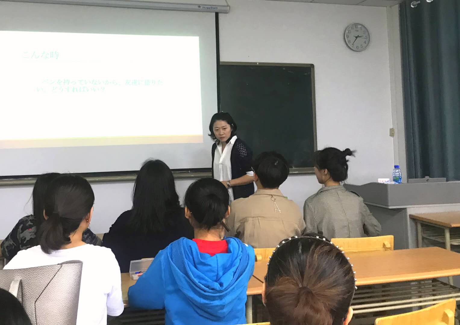 的吴楠老师分别进行了高级日语听力、基础英语、英语阅读和商贸英语课程的课堂教学示范。