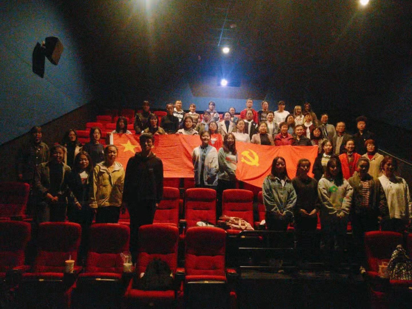 组织师生党员60余人,开展电影党课活动,观看电影《我和我的祖国》。