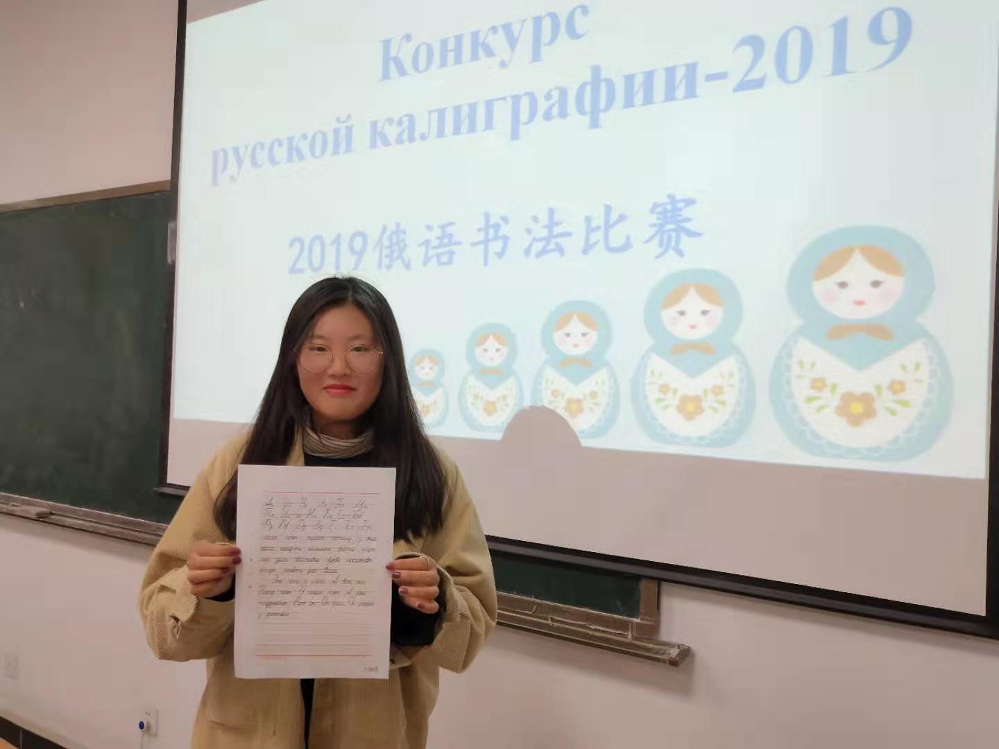 俄语教研室举办的“第五届俄语书法比赛”圆满落下帷幕。书法比赛旨在更好地实现基础俄语书写教学目标,进一步培养大一新生良好的俄语书写习惯,激发同学的学习兴趣。本次比赛内容为抄写俄语字母表和俄语专业四级考试真题听写«Мой отец»选段。同学们积极参加,提交的作品卷面整洁干净,字迹流畅,字母饱满圆润,令人赏心悦目。所有参赛作品均被展出,供师生们欣赏、指正。教研室邀请了外籍教师Владимир Николаевич担任此次比赛评委,经过仔细评阅,分别选出了一、二、三等奖。据悉,前期同学们就此开展了多次训练,并以个人和团体形式参加了由著名俄语学习网站“俄语之家”举办的第三届全国俄语书法大赛,其中有两组同学的作品脱颖而出,进入复赛。