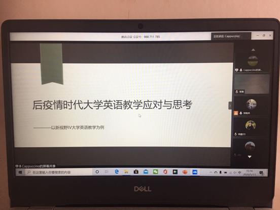 公外部于2020年5月13日下午通过“腾讯会议”开展了本学期第三次《大学英语》“线上”教学交流分享活动。与此同时,公外部“第一教研室”、“第二教研室”分别于14日、15日上午选派老师进行《大学英语》“线上”课程公开授课。公外部全体老师参加了两项活动。