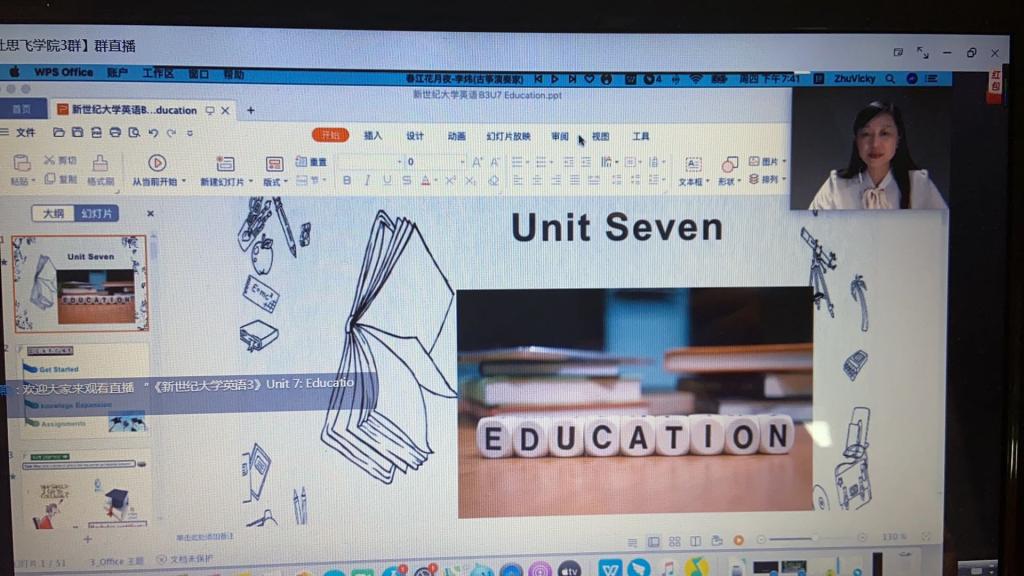 朱海燕老师以《新世纪大学英语3》中第七单元:Education着手,通过探讨Text AAnother School New Year: Why?课文中关于“为什么要上大学?”“上大学的目的是什么?”等问题,引导学生了解大学教育的真正目的不仅是培养专业技能,更是培养学生的人文思想,即通过接触前人伟大思想,做具备综合素质的文明人。另外,通过引用中国古代教育家孔子的教育理念,以及习近平总书记在北京大学师生座谈会上提到的“才者,德之资也;德者,才之帅也”、“大学之道,在明明德,在亲民,在止于至善”等名言,讲解其翻译译文的同时,引导学生应本着“修身齐家治国平天下”的情怀和担当,扎根社会,将个人梦想与国家梦想联系在一起,在实现自身价值的同时,为社会做贡献,实现中国梦。