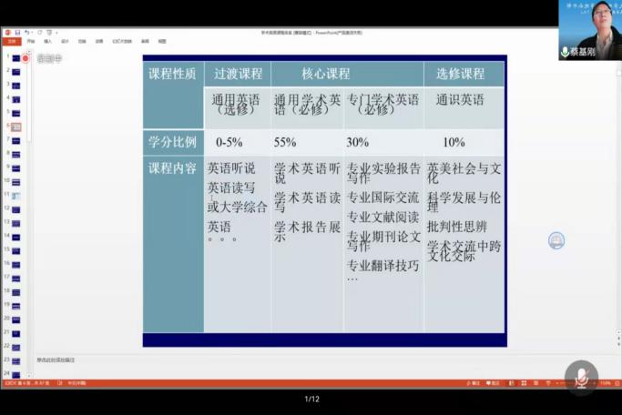 蔡基刚教授以上海自2013年以来,开展通用英语教学向学术英语教学转移的改革实践和经验为例,从以下几方面展开讨论: