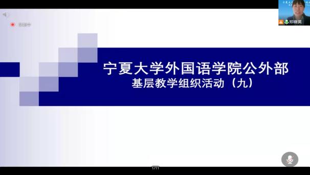 蔡教授讲座中介绍的学术英语课程建设方向,与我校公外部实施的大学英语8+4+X教学模式和学术英语模块课程教学理念相同,方向一致。蔡教授的讲座给了我们宝贵的指引和鼓励,使我们更加坚定大学英语教学改革的方向,明确了培养学生思辨能力,大学英语课程服务于学生学习专业领域知识的大学英语教学目标。此次活动为“大学英语第一教研室基层教学组织活动”内容之一。