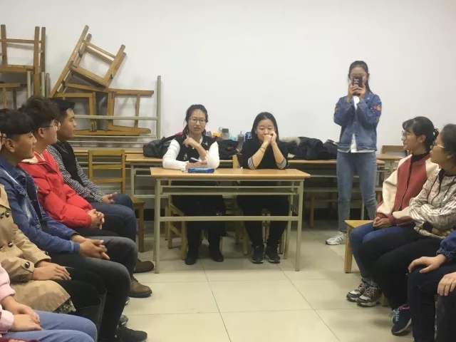 124教室举行,班会由王慧君、李崧源同学主持,班主任马雅琼老师以及学长学姐们参与其中,倾听各位同学畅谈自己的大学梦。
