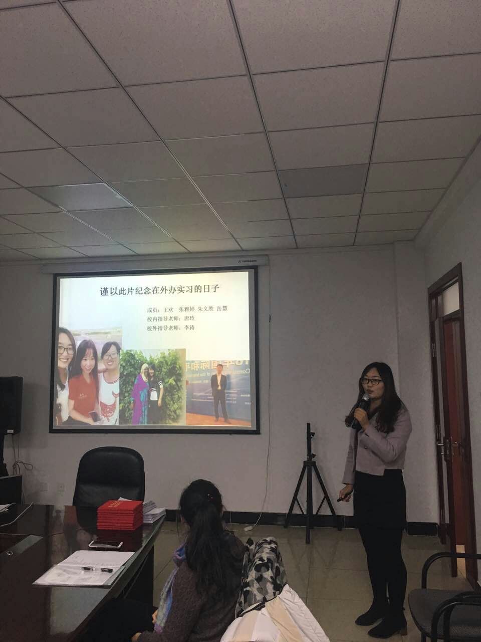 提供近一学期的实习机会,随后分别介绍了他们在实习单位完成的具体工作,包括全程参与中美旅游年活动的筹备、接待各国代表团、翻译大量文献等。同学们在实习中获得了新思考、学习了新技能、获得新的体验、逐渐学会解决问题,进一步认识到翻译实践和专业领域知识对提升翻译质量的重要性,体会到在学校不仅要学好翻译技能,更要打破思维定式、突破专业局限、拓宽知识面、培养团队合作精神、提高综合能力。