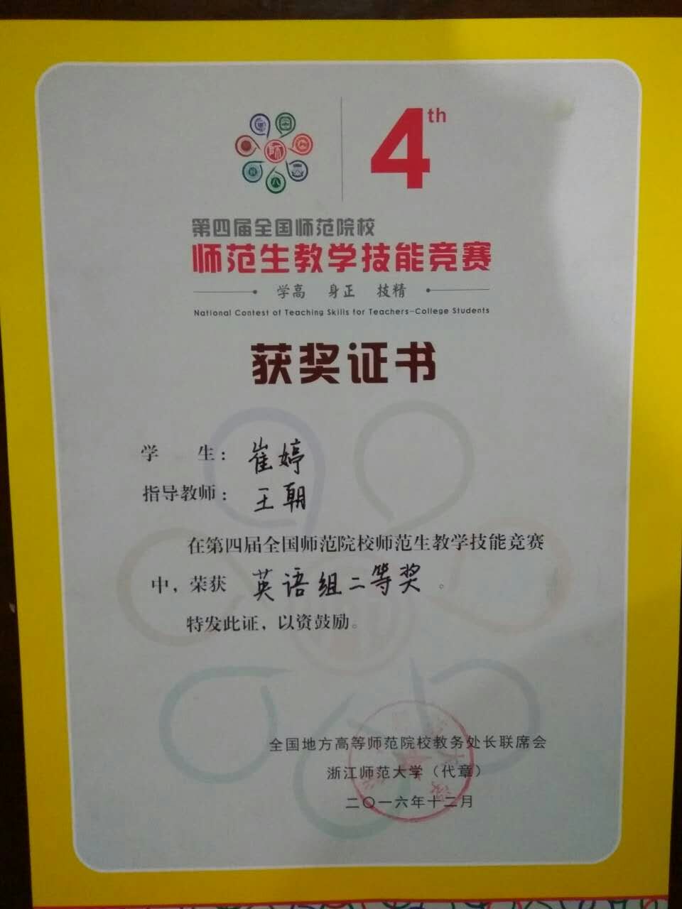 2013级本科生崔婷荣获全国二等奖的佳绩。