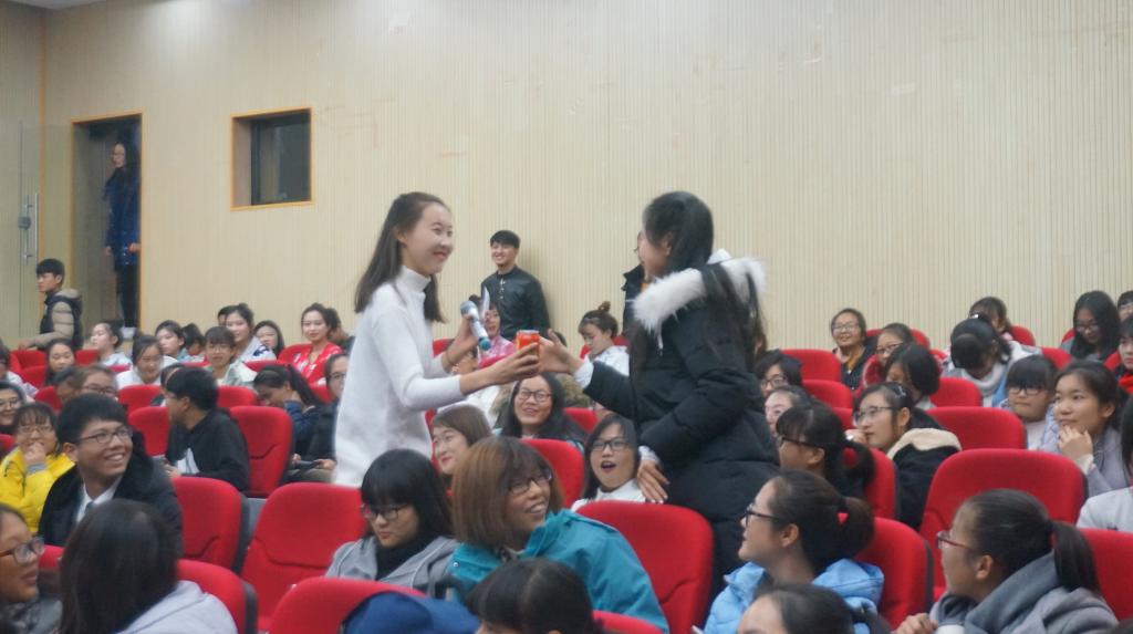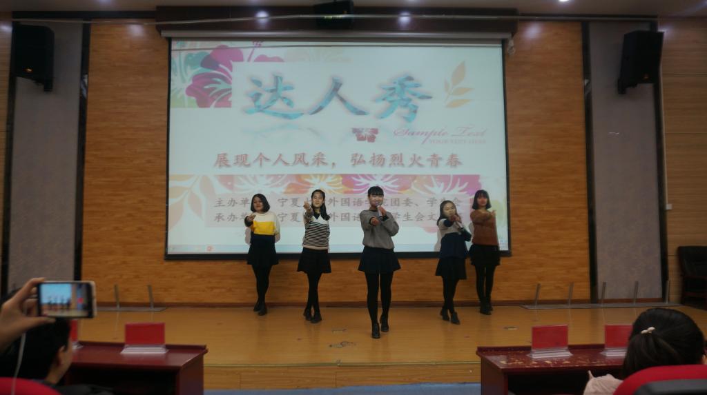 首先,由16级英教一班的同学为大家带来歌曲《The jar of love》,现场热情洋溢,活动拉开了帷幕。然后,一首竹笛独奏《山村迎亲人》,笛声悠扬,现场观众评委如痴如醉,如临其境。紧接着,由16级俄语班同学带来了冰雪之国的歌声《莫斯科郊外的晚上》,带我们领略了异域风情。随后,一曲《春满傣乡》,悠扬的葫芦丝声回荡在整个报告厅内,为观众们描绘了彩云之南的秀丽风景。创意无边,更有16级英教三班同学以杯子舞(Cups)完美演绎了手指与杯子结合的灵动与优美。舞动青春,16级英教二班的同学带来的舞蹈《Change your mind》,以优雅的舞姿,动感十足的音乐,高难度的动作点燃了全场热情。
