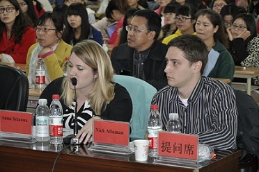 选手王厚琛,他不仅对论题给出了自己独特的见解,同时在问答环节凭借扎实的语言基本功和丰富的社会文化知识,对评委提出的问题作出了流利完整的回答,博得了现场同学们雷鸣般的掌声。最后,评委对本次大赛做了细致点评,对选手们的出色表现给予了肯定,并就他们在演讲中存在的问题提出了宝贵建议。