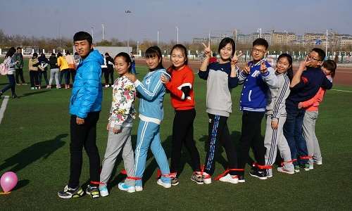 同学们以班为单位分为八个参赛团队,运动会中共设置了八个团体赛项目,每一个项目都可以锻炼同学之间的配合和团队合作精神。伴随着动感十足的背景音乐,同学们争先恐后,为班级,为集体荣誉而拼搏着。十人九足的赛场上,同学们手挽手,肩并肩,喊着整齐的口号,迈着一致的步伐,向终点稳步前行;搭桥过河赛场中,同学们立足于一块小小的纸板上,小心地保持着身体的平衡;海底传月赛场中,同学们排成一列,躬下身传球,脸上洋溢着欢笑……