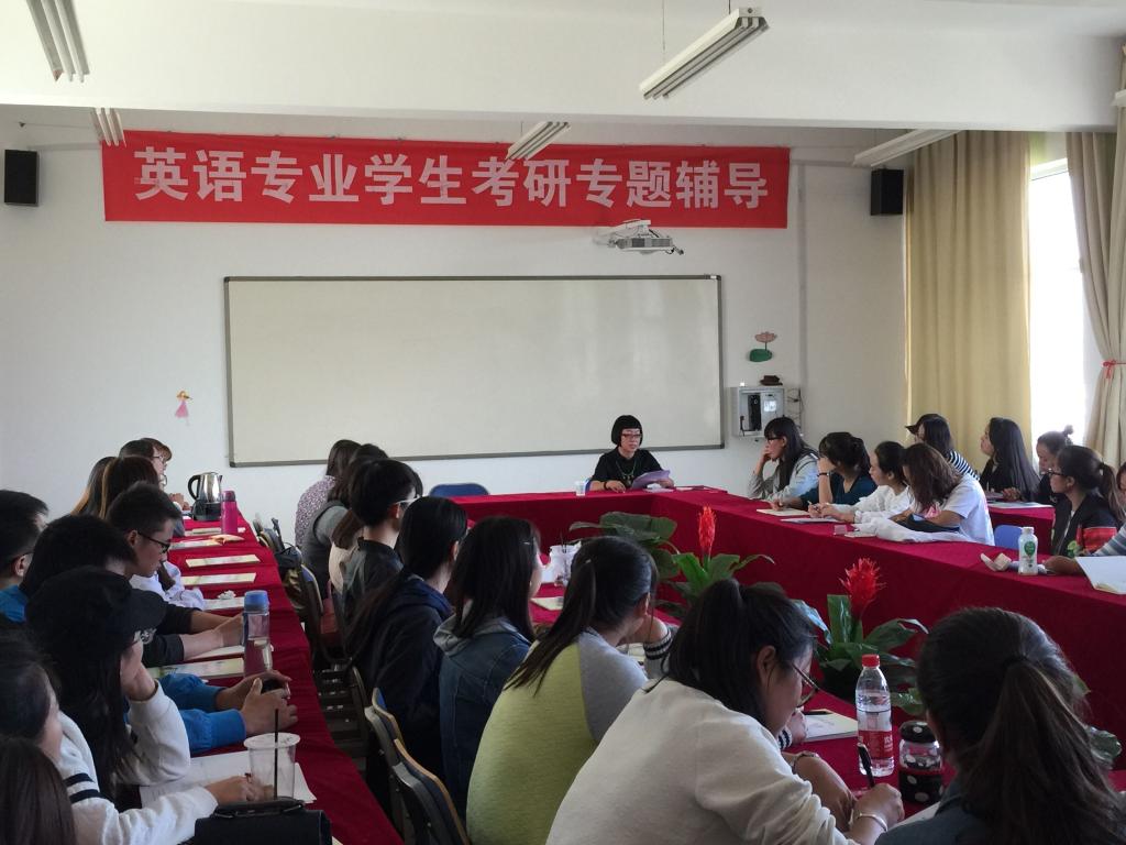 胡笑瑛老师以“让生命开出更美的花——英语专业考研辅导”为题目,以“为什么考研”、“如何将现实学习与职业规划相结合”、“如何寻找刻苦学习的动力”等问题为导语,引发学生的思考。在阐述完考研的意义后,胡老师详细讲解了报考捕鱼大玩家
