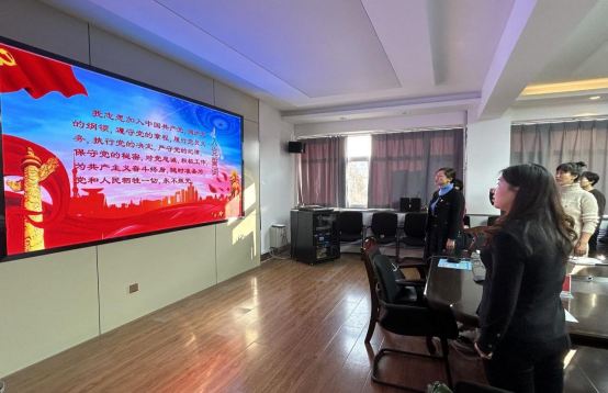党总支书记朱海燕介绍了本次活动的背景和意义。然后,在朱海燕同志的带领下,参加主题党日活动的全体党员重温了入党誓词。