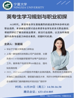邀请上海一者信息有限公司产品经理张星瑶女士做“英专生学习规划与职业初探”专题讲座。捕鱼大玩家