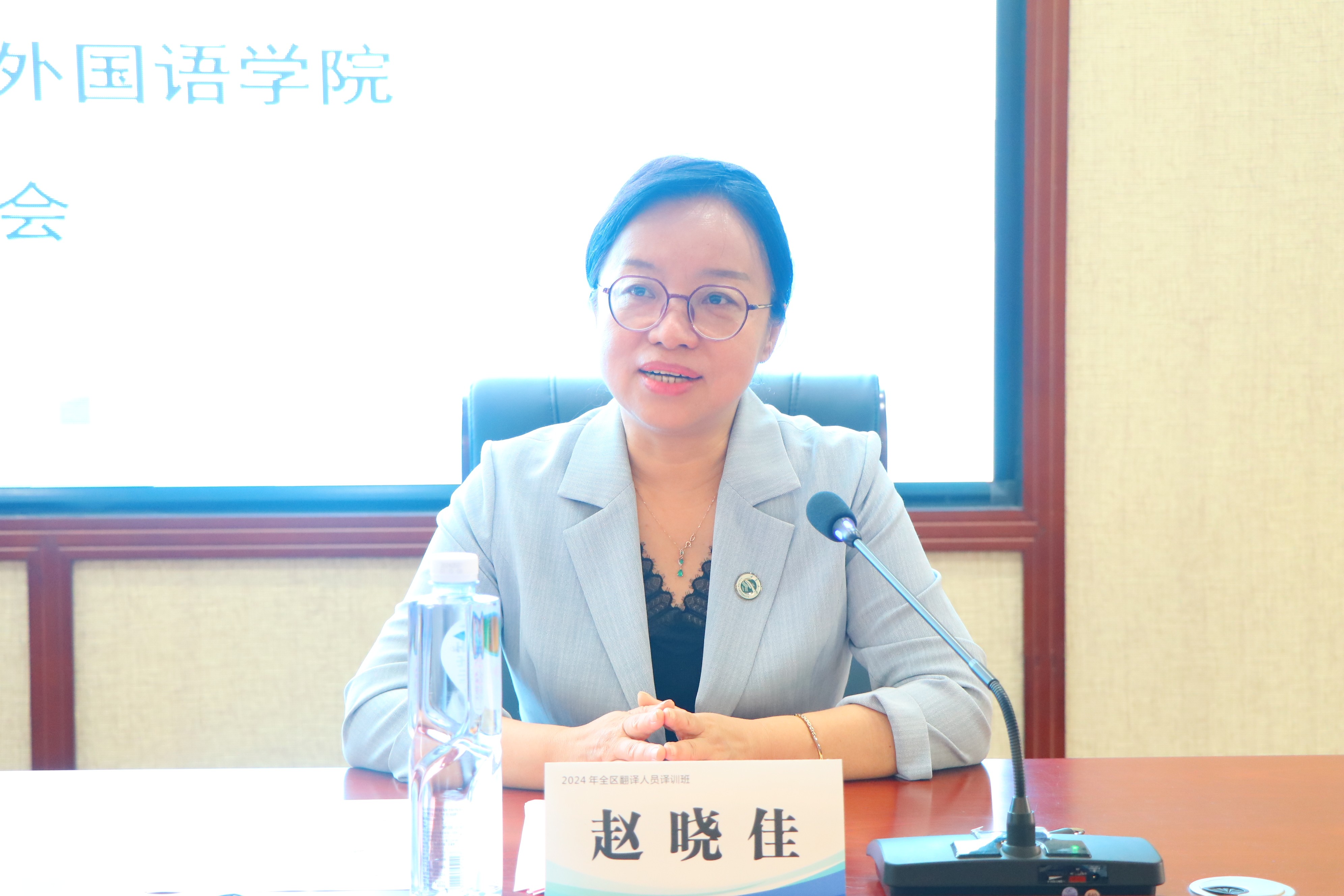 赵晓佳指出,翻译人才的培养既是服务我区高质量发展的具体措施,也是我校“双一流”建设对于高水平涉外人才的现实需求。作为译训班的承办方,宁夏大学将以此平台为契机,加大校内外资源整合力度,注重学科交叉融合,深化和扩大校际合作,和全区兄弟单位一起相互学习借鉴,立足翻译学科,加强国际传播能力建设,积极融入重大国家战略,服务宁夏对外开放事业的内涵式发展。