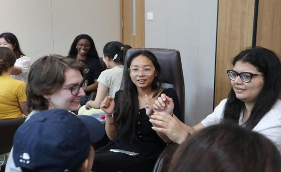 卓越师范生与湖南师范大学、基尔大学学生在轻松愉快的氛围中用英语畅谈,介绍各自的家乡和文化经历,品尝宁夏的八宝茶,共享这份“有朋自远方来,不亦乐乎”的温暖与情谊。