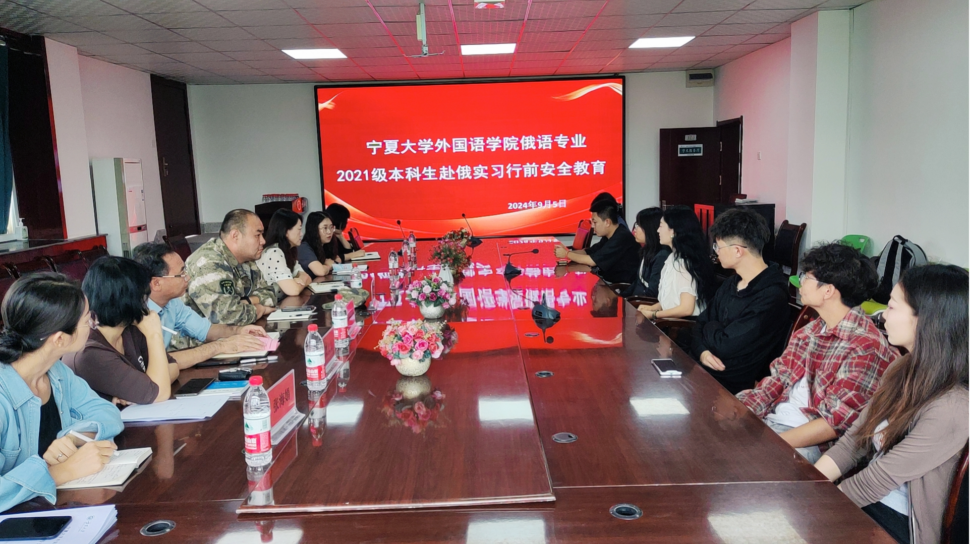 领导班子全体成员,以及2021级赴俄实习的9位同学参加了会议。会议由东语系系主任张海娟老师主持。