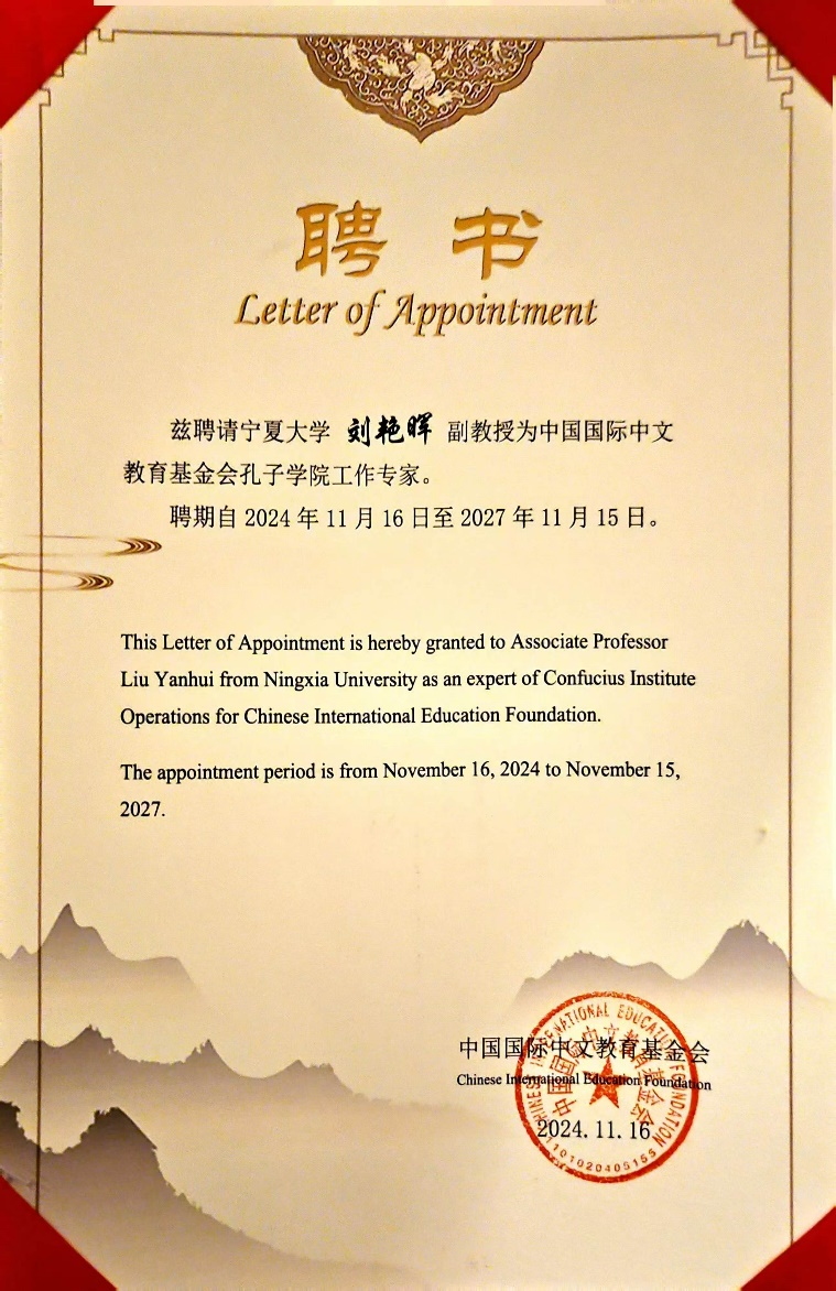 院长人才培养领域的卓越成就和突出贡献,也展示了宁夏大学专家学者在国际中文教育方面的深厚底蕴和实力。