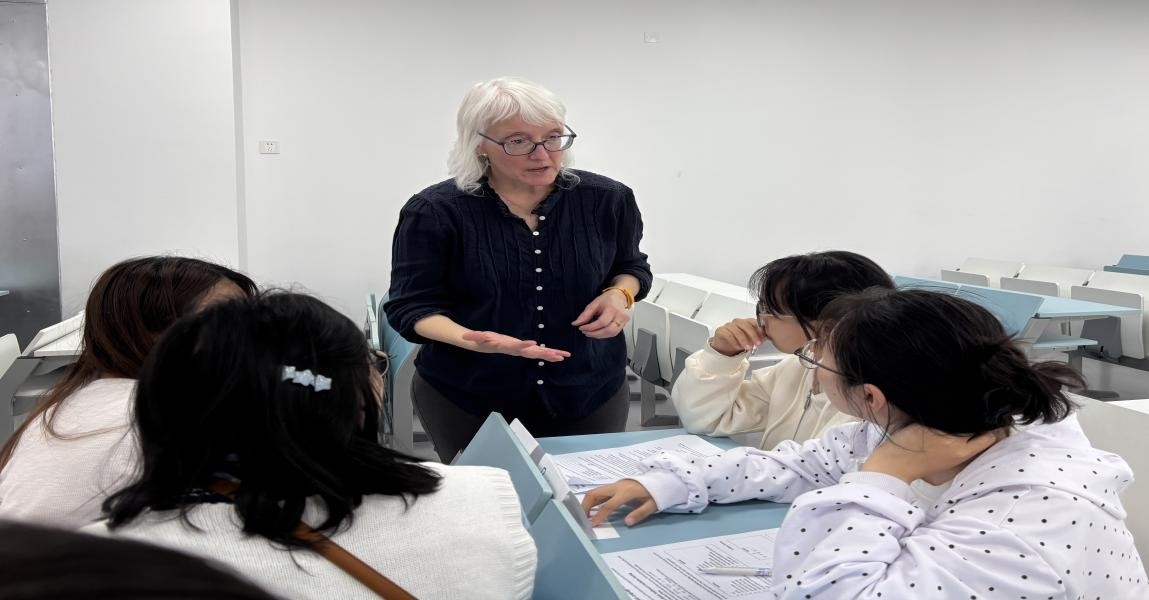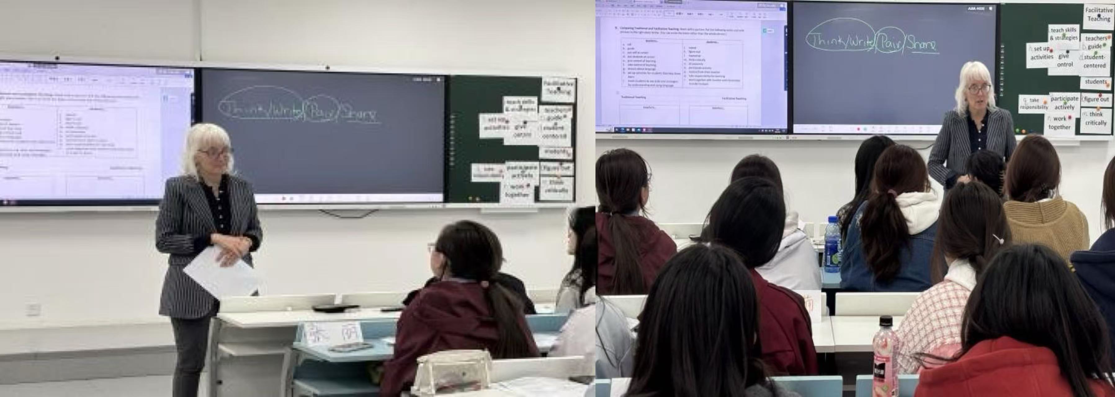 邀请英语教学法领域专家Melissa Smith博士为工作坊负责人,面向2024级英语师范专业的53名学生,分四大主题,八大场次进行。在本期工作坊中,Melissa老师与同学们探讨了传统式(traditional)与促成式(facilitative)教学理论的异同;带领同学们审视自己对于英语教学的已有认知;并鼓励大家打破固有观念,从传统教育理念向促成式教育理念转变。