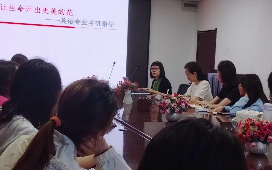 最后,班主任文莉老师对本次主题班会进行总结发言:希望同学们以今天的分享为起点,提前做好职业规划,夯实语言基础,为未来的保研或考研打好基础,“让生命开出更美的花”。