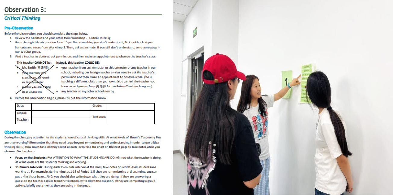 2023级卓越教师培养计划系列活动在笃行楼313教室如期进行。本次活动是卓越师范班第二学年第三次教学观摩反思工作坊活动,主题为“Post-Observation Discussion 3: Critical Thinking”。工作坊由教学法专家Melissa Smith博士主持,旨在引导师范生深入观察、系统分析与评价学生运用批判性思维解决问题的能力。