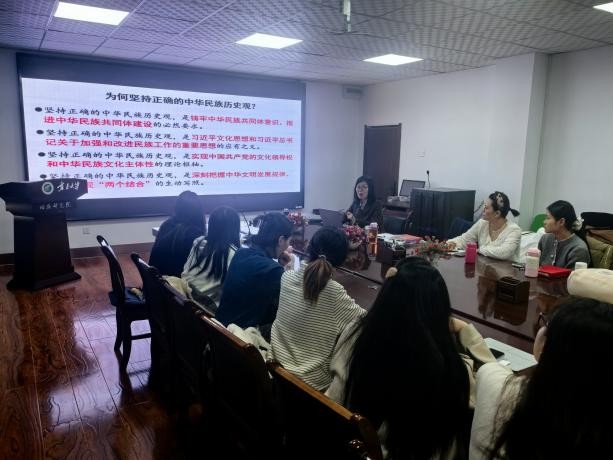 讲座最后,朱海燕书记总结讲话。她表示,范弘雨老师的讲座既有理论高度,又有实践深度,内容丰富。希望全体同学进一步提高政治站位,把中华民族共同体意识内化于心、外化于行,坚持“两个结合”,主动担当作为,以实际行动维护民族团结和国家统一,在跨文化沟通中坚定捍卫中华民族历史发展的真实性、客观性,让世界听到中华民族历史的正确声音,做一位合格的国际传播者。