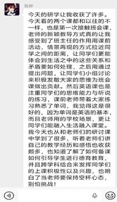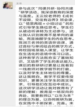 最令师范生感触深的是教研活动环节。在纳老师领学师德师风和新课标的相关文件后,七年级备课组长梁老师介绍了集体备课的经验和成果。在对陈润兰老师的展示课评课过程中,其他老师的点评真诚且有针对性,提出的五点建议让师范生看到一节课多次打磨后依然有提高的空间。捕鱼大玩家 师生积极参与研讨,Smith博士肯定了课堂活动的效果,李艳、牛林琳、于成龙、徐哲四位师范生也现场分享了这次见习的收获与感悟。
