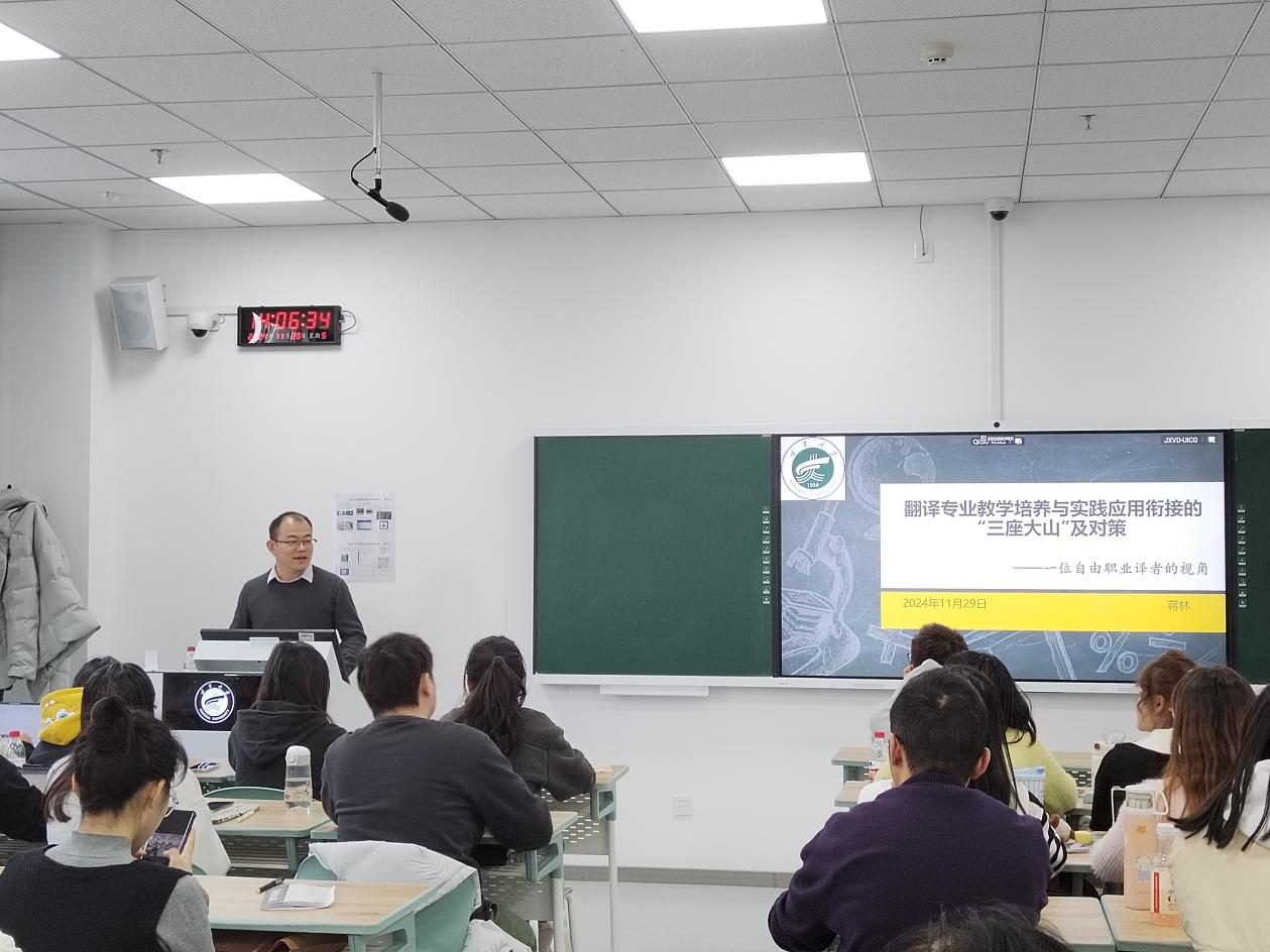 师生开展题为“翻译专业教学培养与实践应用衔接的‘三座大山’及对策 ——一位自由职业译者的视角”的主题讲座。本次讲座由刁俊副教授主持,捕鱼大玩家