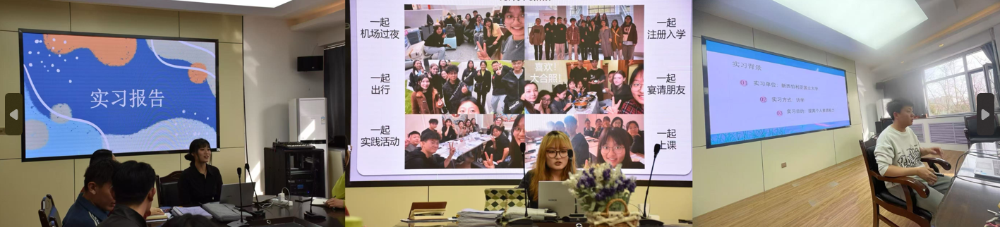 首先,2021级6名学生代表全体实习生进行实习汇报。2021级俄语专业实习分自主实习、国内统一实习、国外实习三组。实习生们分别就自己的实习内容、实习收获及实习反思进行分享。